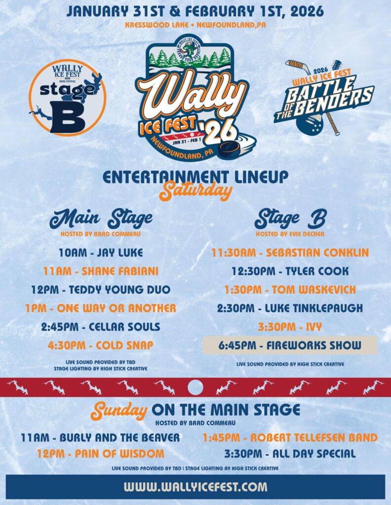 Date: February 1st, 2026 Time: 12pm Location: Kresswood Lake, Newfoundland, PA